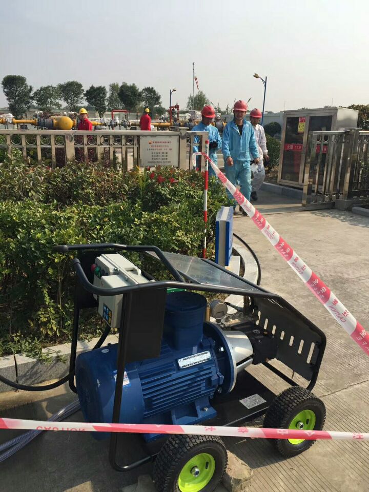 瑞潔恒通RJHT-5022工業(yè)級(jí)防爆高壓清洗機(jī)順利進(jìn)入中石油昆侖燃?xì)饽暇┨烊粴忾T(mén)站,用于防腐處理。